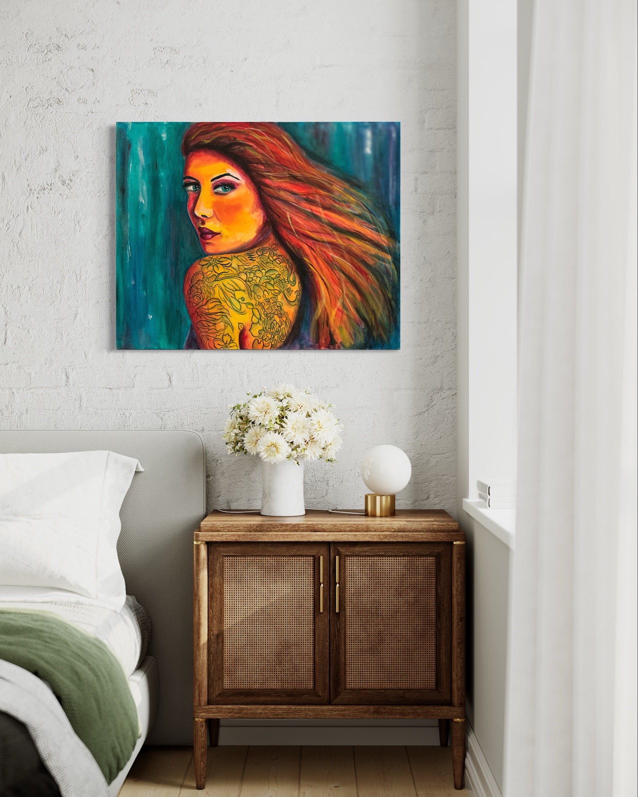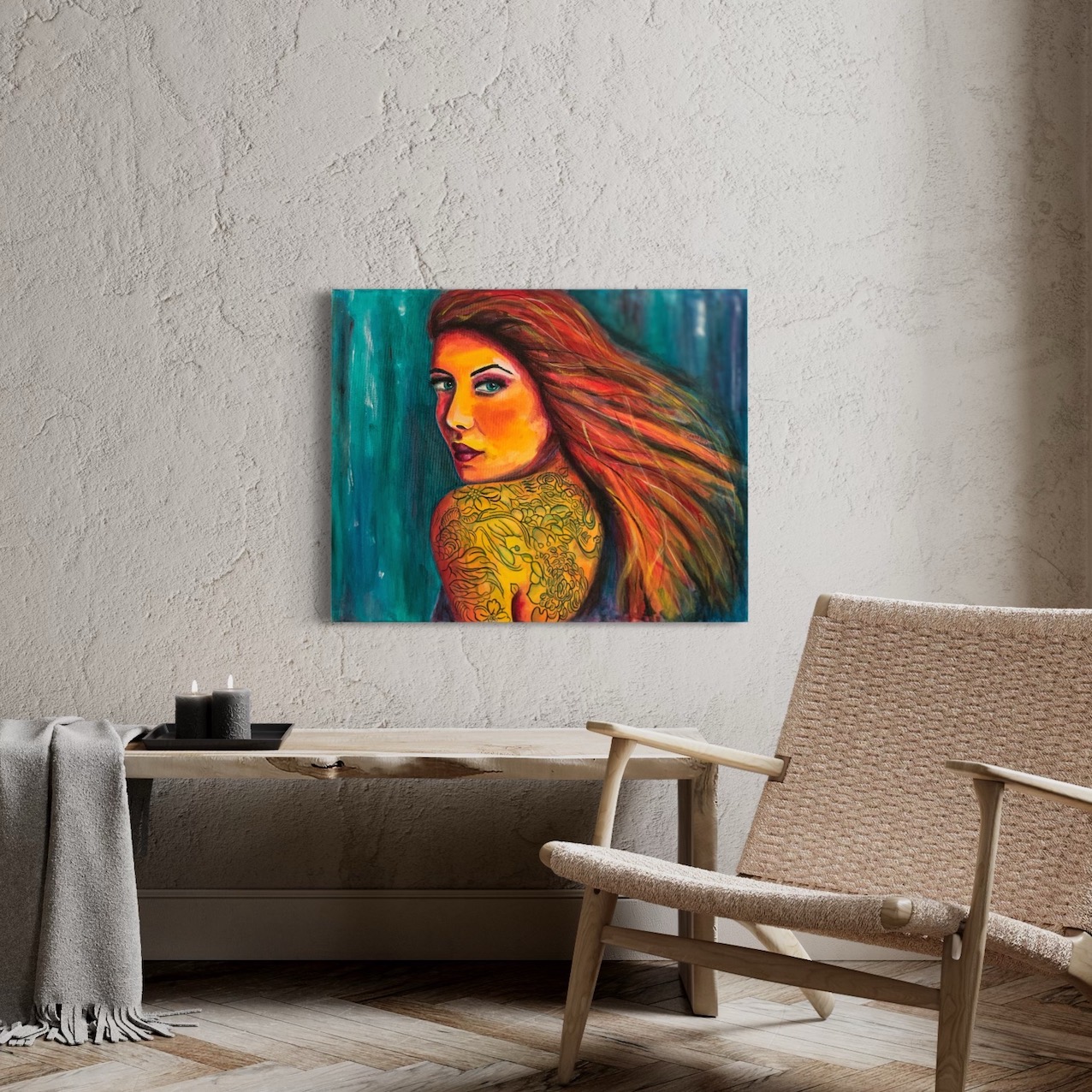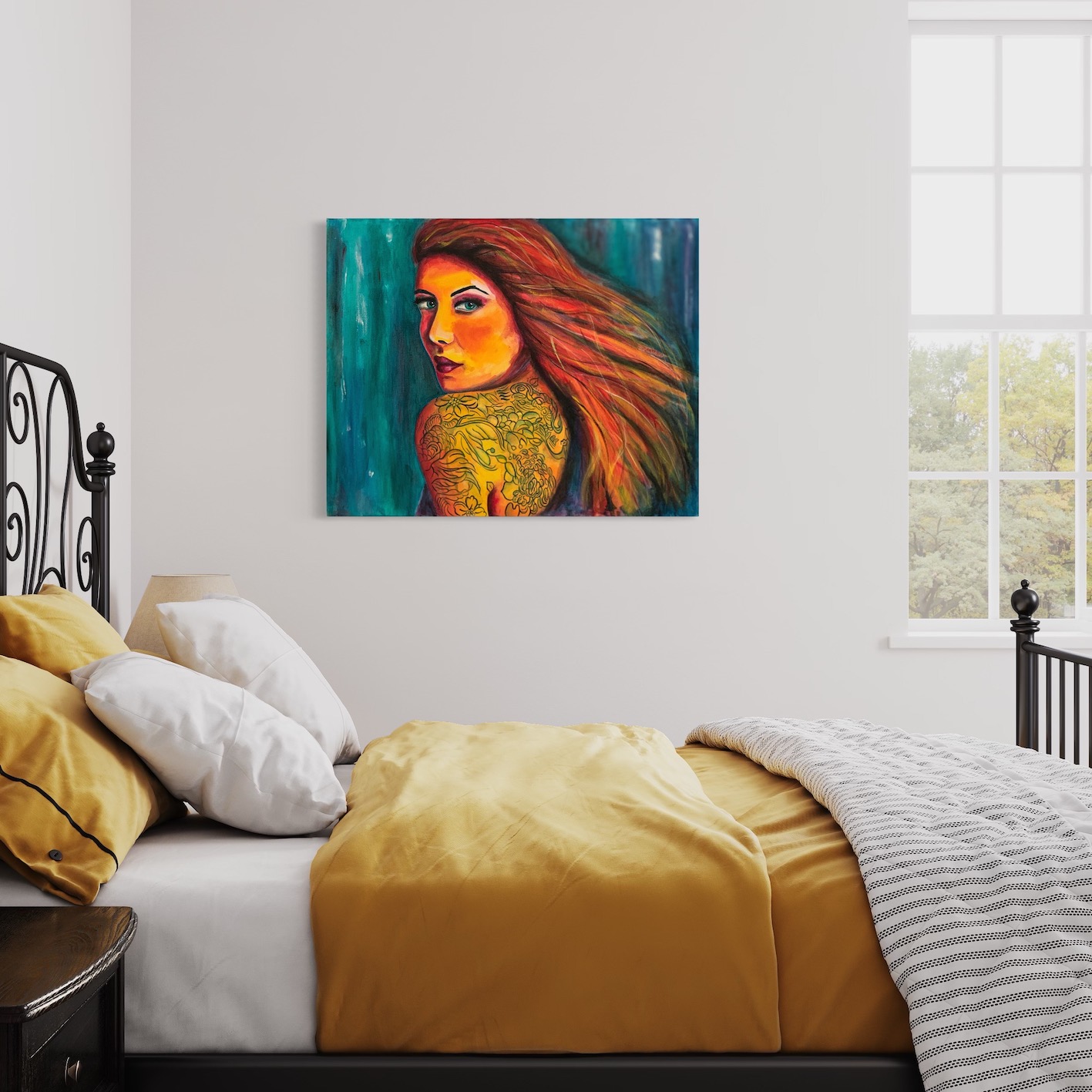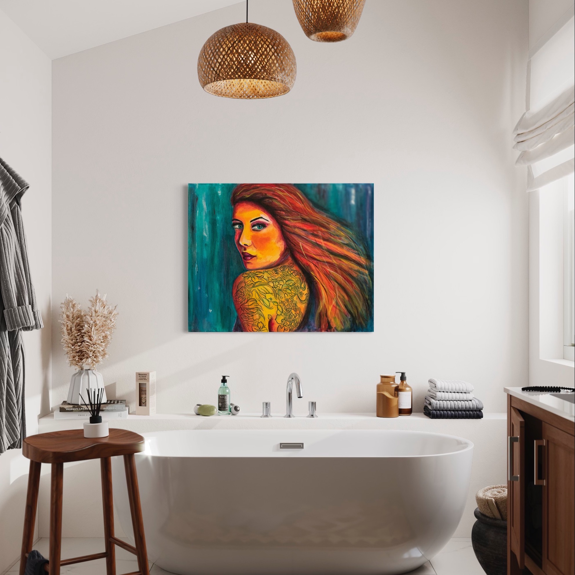 Pronto per essere appeso al muro, senza cornice.